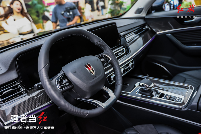 新红旗HS5外观设计全面升级,基于红旗品牌“尚·致·意”造型语言进行创新演绎。“高山飞瀑、中流砥柱”的直瀑式格栅、“飞翼”式前大灯、“红光闪耀”贯通式前旗标,共同展现专属于红旗的昂扬气势。动感凌厉的腰身姿态、旌旗飘扬的车身型面,以及车后部融入箭羽意象的贯穿式尾灯,令人过目难忘。内饰设计上,新红旗HS5以东方美感与前沿技术为基础进行全面改进升级。仪表板设计简洁、优雅,悬浮面板与中控旋钮穿插互动,在体现精巧美感的同时更兼顾操作便利性。此外,更有流水氛围灯、实木饰板、金属扬声器面罩等细节,巧妙点缀、致享尊贵。
