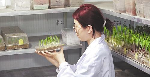 科研育种,查看育苗长势。