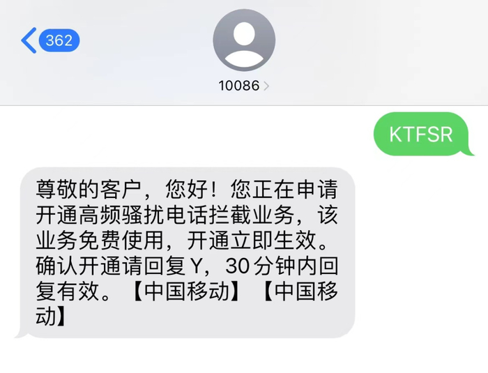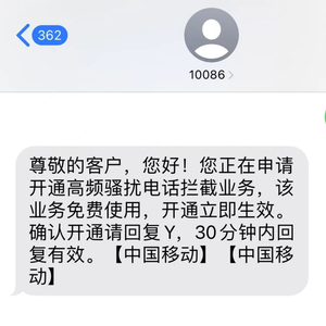 “中国移动高频骚扰电话防护”