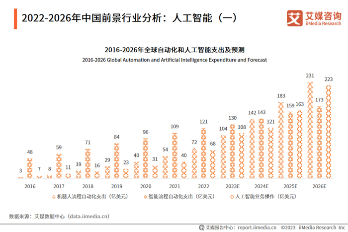 随着全球自动化、人工智能、大数据等技术的发展,全球企业在自动化和人工智能领域的支出随之增加。数据显示,在2022年全球自动化和人工智能支出中,机器人流程自动化达72亿美元,智能流程自动化达121亿美元,人工智能业务操作达68亿美元,人工智能行业整体呈现增长态势。人工智能的技术价值不断凸显,行业人才供需持续增长,就业方向广阔,可从事人工智能工程师、人工智能专家、人工智能科学家等职位。