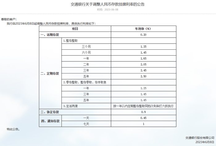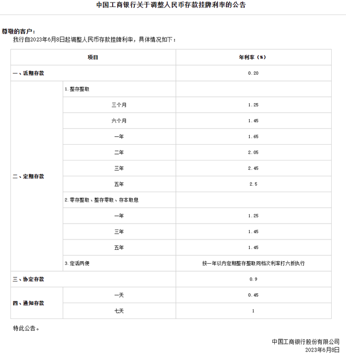 6月8日,工商银行、农业银行、建设银行、中国银行、交通银行、邮储银行六大国有银行共同下调存款挂牌利率。