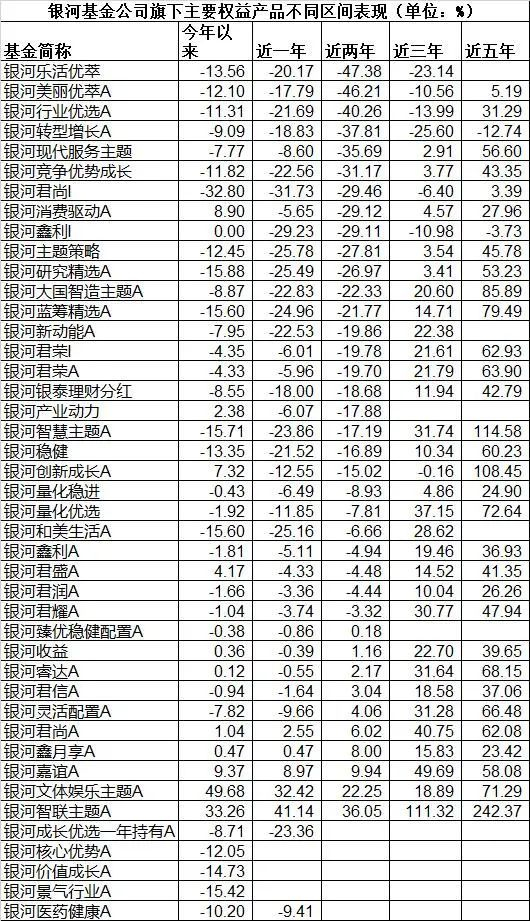 从银河旗下基金产品不同时间段表现来看,可谓分化巨大,不少产品近年来大幅亏损。