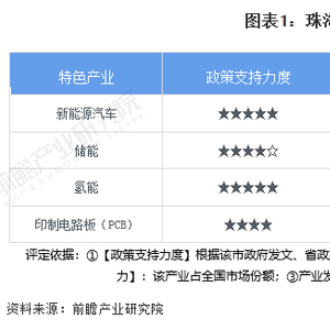 珠海市发布的《关于坚持“产业第一” 加快推动工业经济高质量发展的实施方案》中明确了“产业第一”的原则,把产业发展和园区建设作为经济发展主战场,努力打造 “4+3”产业集群。“4+3”产业集群是指新一代信息技术、新能源、集成电路、生物医药与健康4大主导产业,以及智能家电、装备制造、精细化工3大优势产业。前瞻根据政策支持力度、产业竞争力和产业发展前景三大指标体系,评选出了珠海市的特色产业为新能源汽车产业、储能产业、氢能产业以及印制电路板(PCB)产业。
