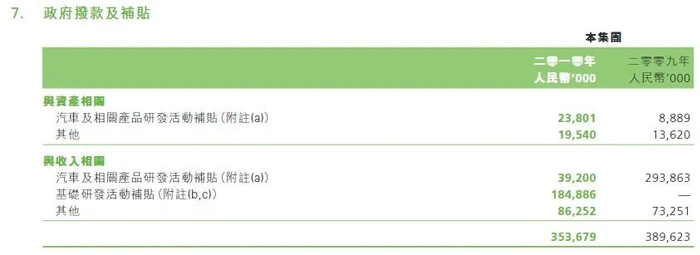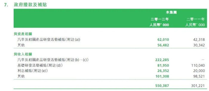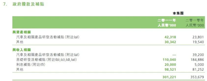 比亚迪集团50,000,000元确认为政府拨款收入。比亚迪集团政府补贴,乃由地方政府提供,旨在为双模电动车“秦”的研究与开发活动提供支持。