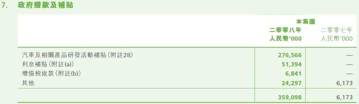 其中,2008年276,566,000元(2007年:无)确认为政府补贴收入(计入损益表),原因为深圳比亚迪汽车产生研究与开发成本,包括本公司及其同系附属公司产生的金额。