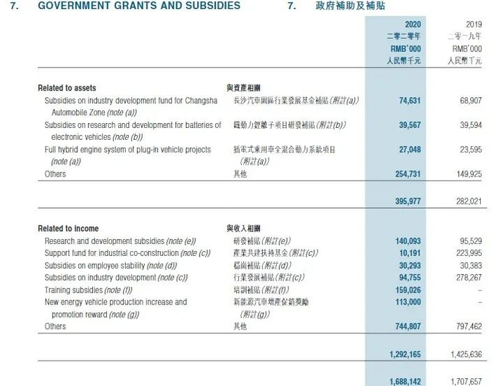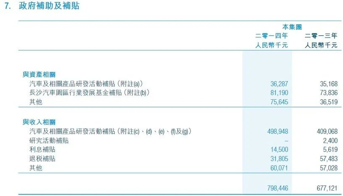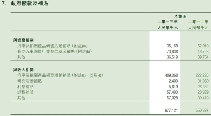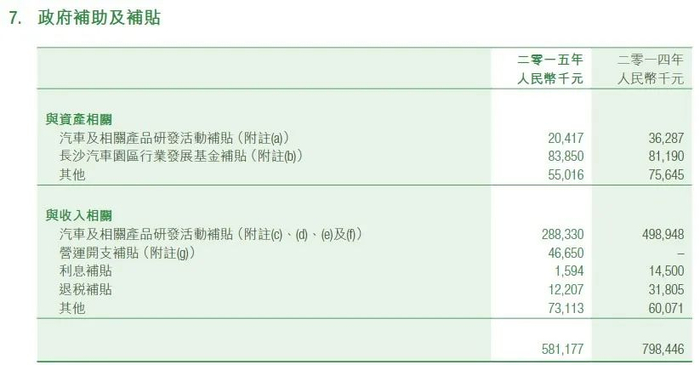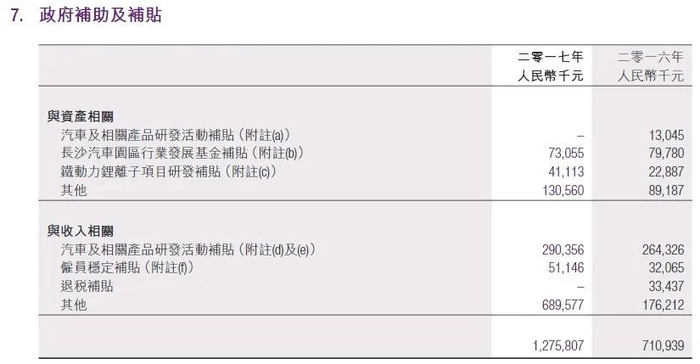 长沙比亚迪汽车50,000,000元确认为政府拨款收入,由长沙雨花经济开发区管理委员会提供,以支持行业发展、汽车的研究与开发活动提供支持;