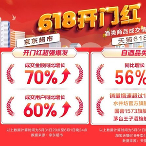 数据显示,5月31日20点至6月1日晚24点,京东超市618开门红28小时,酒类商品成交额同比增长70%,成交用户同比增长60%,白酒、葡萄酒、洋酒、啤酒等细分品类均实现突破。