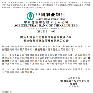 农业银行:法巴农银理财获国家金融监督管理总局批准开业