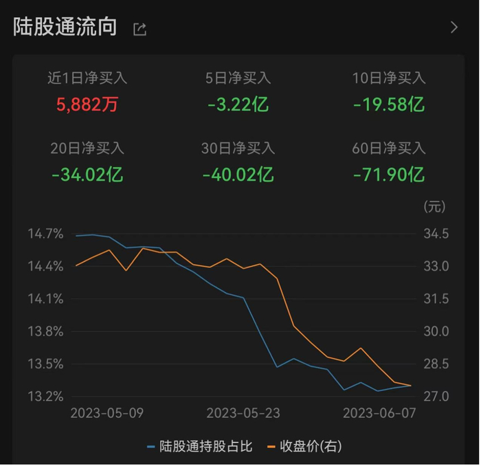 一季度获北水加仓,近60日净卖出近72亿