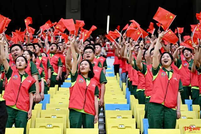 除了祝福罗慕洛外,今天的凤凰山专业足球场,成都发布、红星新闻联合成都蓉城足球俱乐部推出“邀请城市一线建设者看一场球”活动,通过成都市总工会、成都市城管委、美团、顺丰等部门和组织,邀请了500多位城市一线建设者到现场观赛。他们中有技艺精湛的“成都工匠”、为城市“擦亮”容颜的环卫工人,也有构筑城市活力的建筑工人、外卖小哥、快递小哥。赛前,一线建设者方阵唱响了《我和我的祖国》,用热爱为城市鼓掌,用热情为球队加油!