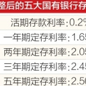 6月8日,包括工商银行、农业银行、建设银行、中国银行在内的多家国有银行再度下调存款挂牌利率。其中,活期存款利率从此前的0.25%下调至0.2%,2年期定期存款利率下调10个基点至2.05%,3年期定存利率下调15个基点至2.45%,5年定期存款利率下调15个基点至2.5%。