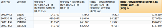 但在2023年一季度出现拐点,欣旺达营收104.8亿元,同比下降1.34%;净利润亏损1.65亿元,去年同期盈利9492万元。