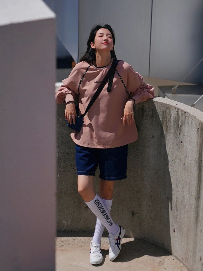 平时不需要多余的搭配,上身随便搭配啥都行,都很有青春活力。有种不会太随意的慵懒感,通勤和出游都能穿。