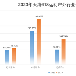 2023年天猫618运动户外行业预售表现 数据来源:三方数据机构