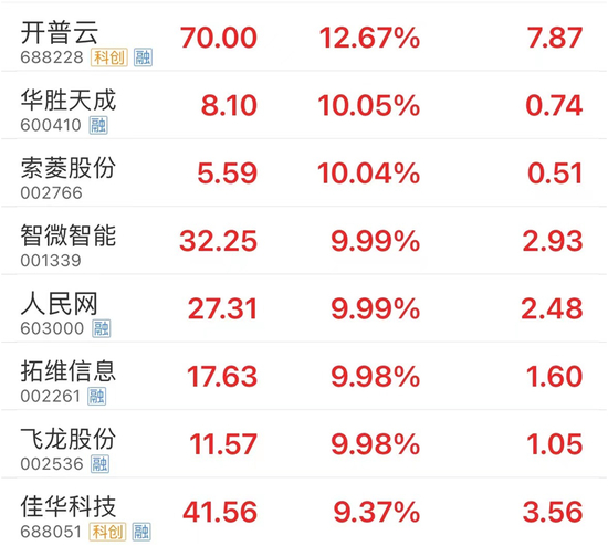 AI概念股近期反复活跃,今日早盘呈现反复震荡态势,中午前再度冲高,算力概念涨幅居前。截至收盘,开普云涨超10%,华胜天成、智微智能、拓维信息、飞龙股份等多股涨停。