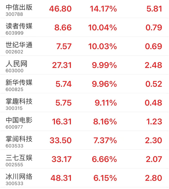 AI应用端的传媒板块也出现分化。截至午间收盘,中信出版涨超10%,读者传媒、世纪华通、人民网、新华传媒等涨停,而此前热门的北京文化、凡拓数创、遥望科技均跌超6%。