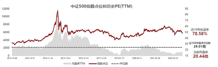 从估值来看,中证500指数现阶段估值处于历史底部区间,截至2022年9月30日,指数市盈率仅为20.44倍,位于近十年约11%的分位水平,比近十年89%以上的时间都便宜,布局正当时。