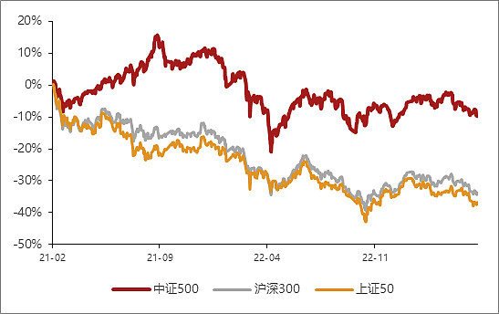 让我们来用数据说话,Wind数据显示,近两年以来,代表大市值的沪深300、上证50涨幅在绝大部分时间都低于代表中小市值的中证500。