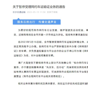 在此之前,海南三亚市交通运输局也发布通告,暂停受理网约车经营许可及运输证核发业务,原因则是当地近年来网约车平台与车辆激增、运力趋于饱和,违规经营现象突出。需维护网约车市场秩序,保障乘客及其他经营者的合法权益。