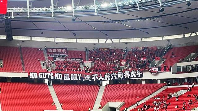 6月3日万众瞩目的“天王山之战”上海海港VS成都蓉城中,成都蓉城也夺取了胜利。赛前,对方也是本赛季的不败金身,既是挑战强敌,又是客场作战,如何给球队、球员们带来最“雄起”的助威?陈涛和红色刀锋的兄弟们赶紧设计出了新的助威横幅——“NO GUTS NO GLORY 不入虎穴焉得虎子”,横幅长度40米。