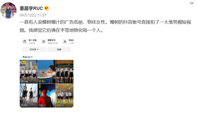 如今在舆论场上最容易引起争议的性别议题,就这样被点燃,完成了对“椰树审美”话题的讨论接力。短时间讨论不会有结果,它也不需要有结果,重要的是要一直有话题。