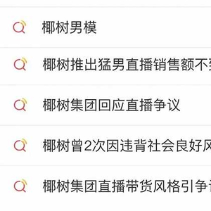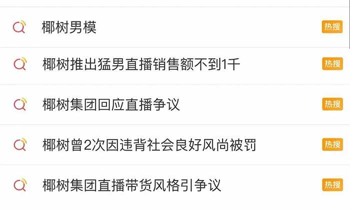 自从5月25日正式在淘宝直播开播后,椰树集团一共靠着直播内容上了13次热搜,比过去一年都多,而且多数与他们的男模团有关。