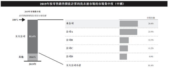2019年,蓝月亮在洗衣液市场的份额为24.4%,仅比第二名高出0.9个百分点。事实上,洗衣液并非技术门槛特别高的行业。蓝月亮更多是洞察到尚未被同行们发现的市场机会,抢占了先机。当同行们都回过神来时,市场的竞争随之加剧。
