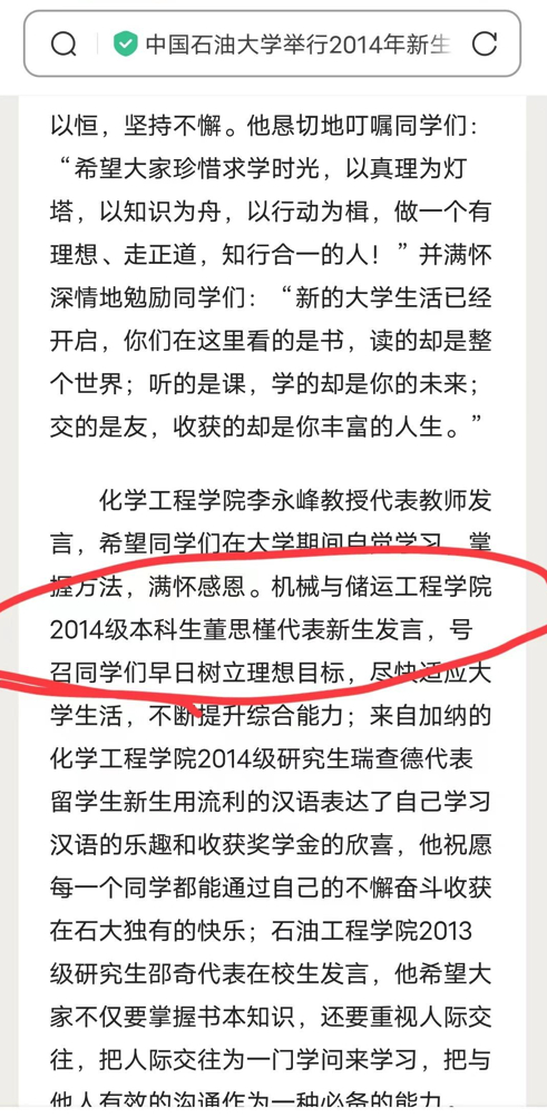 女主董XX,于2014届在北京以藏族身份考入中国石油大学机械专业。