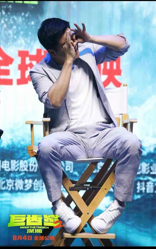 影片中,杰森·斯坦森饰演的乔纳斯·泰勒和吴京饰演的科学家张九溟带领深海小队潜入7000米深渊,展开一场巨燃巨爽巨震撼的深海冒险。此前,网友们为杰森·斯坦森和吴京合照中独特的微笑起名“鲨鱼笑”。现场,两人不仅还原了招牌“鲨鱼笑”,还互相监督对方有没有遵守“鲨鱼笑的秘诀”——露出十颗牙齿。