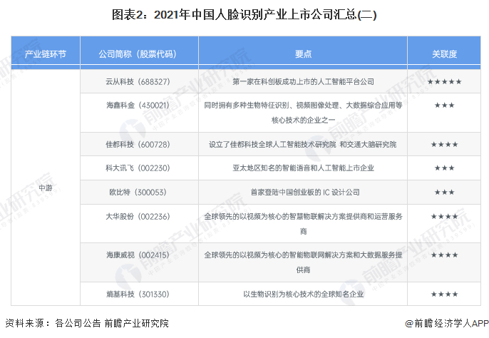 人脸识别行业代表上市公司也业务的发展规划布局如下: