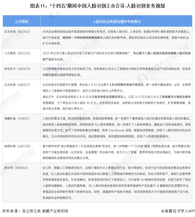 4、人脸识别行业上市公司人脸识别业务规划对比