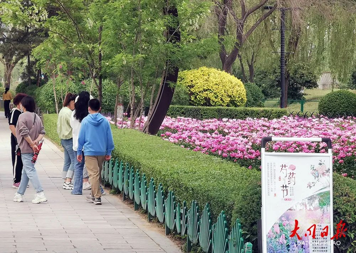 文瀛湖种植芍药多年,景区内芍药花色彩丰富,缤纷多彩,每年都会吸引大量游客前来观赏,拍照留念。