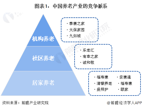“十一五”期间上海市政府率先提出构建“9073”养老服务格局,即选择家庭养老、社区养老和机构养老的老人数量,分别占老龄人口比重分别约为90%、7%和3%。根据“9073”养老服务格局,我国养老产业市场参与者也可分三大派系,分别是:机构养老服务企业、社区养老服务企业、居家养老服务企业。