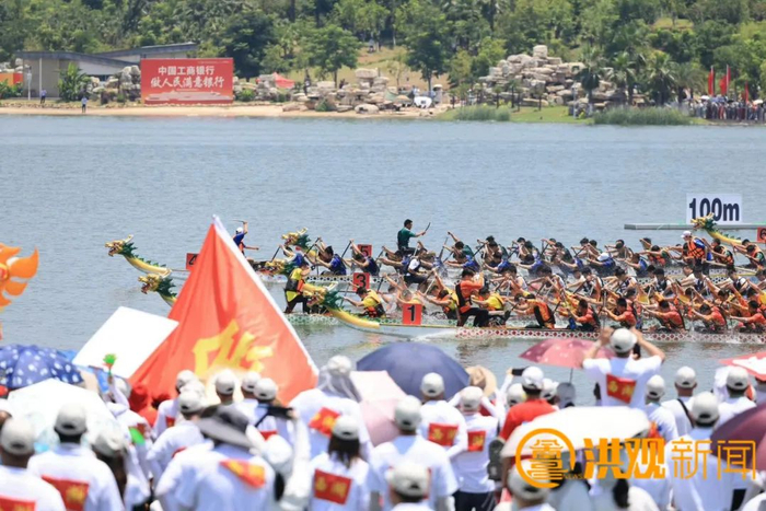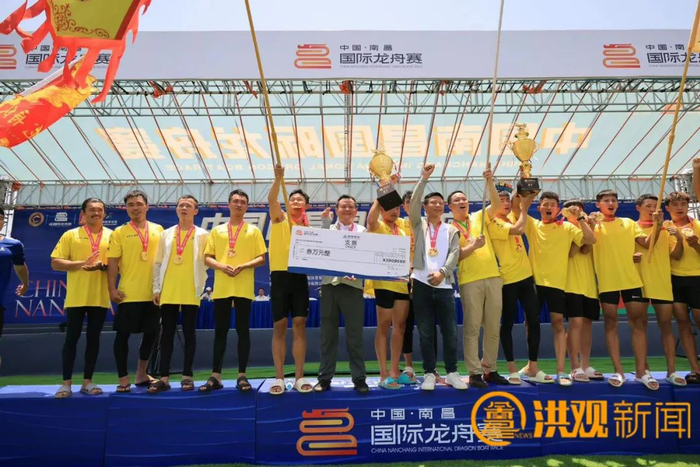 从预赛开始,鄱阳南昌县联队就展现出超强实力,他们在小组赛中,以领先第二名两秒多的成绩直接晋级半决赛,在半决赛中,他们依旧以较大优势拿下第一直接晋级决赛。决赛争夺异常激烈,前300米,一至五道的龙舟队差距只有毫厘之间,在二道的鄱阳南昌县联队甚至只排在第三。最后两百米,鄱阳南昌县联队强大的冲刺能力让他们脱颖而出,在最后五十米处终于冲到了第一,并以领先四分之一条艇的优势拿下冠军。