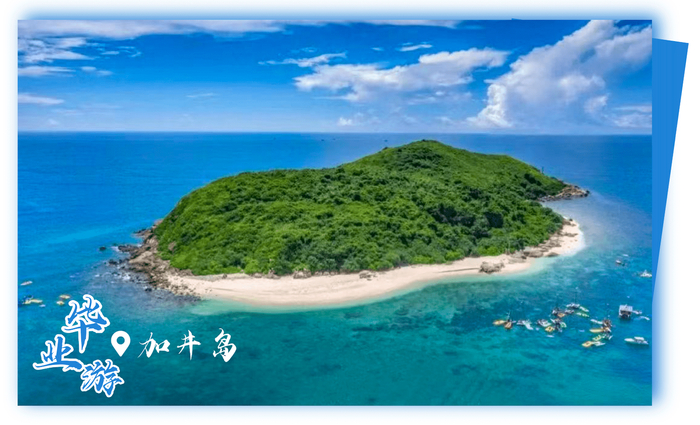 碧海白沙,浅海伊甸园,被中国国家地理推荐的加井岛是海南万宁石梅湾内的一个无人岛。它的浅海能见度很高,自然资源得天独厚,自带蓝宝石滤镜的海水清澈见底。周边海底分布着种类丰富有着令人叹为观止的珊瑚礁与色彩斑斓的热带鱼等海洋生物,潜入其中,便能一睹蔚蓝壮观的海底花园。