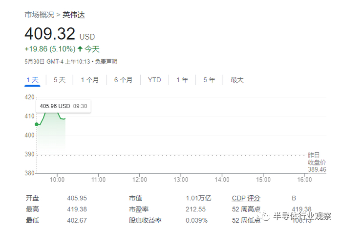 英伟达(Nvidia)在这一天,开盘股价涨逾4%,总市值突破万亿美元,不仅是全球第一家市值突破万亿美元的芯片公司,同时也是仅次于苹果、微软、Alphabet、亚马逊的第五大科技股。