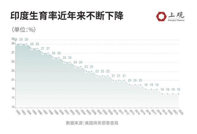由于生育率刚开始下降,目前的印度人口还非常年轻。