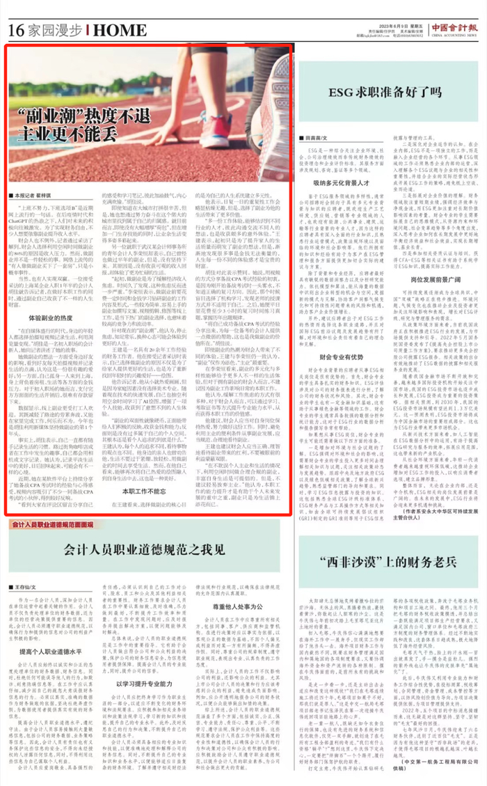 当然,也有人实现双赢。一位接受采访的上海某企业入职1年半的会计人胡佳就告诉记者,在做好本职工作的同时,通过副业自己收获了不一样的人生财富。