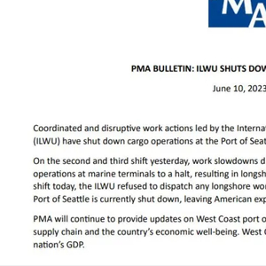 当地时间本周六(6月10日),代表码头运营商的太平洋海事协会(PMA)发布公告表示,西雅图港因国际码头和仓库工人工会(ILWU)拒绝派遣工人到集装箱码头作业而关闭。目前,围绕美国西海岸港口的劳资纠纷仍在持续……