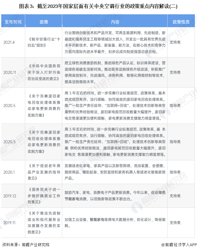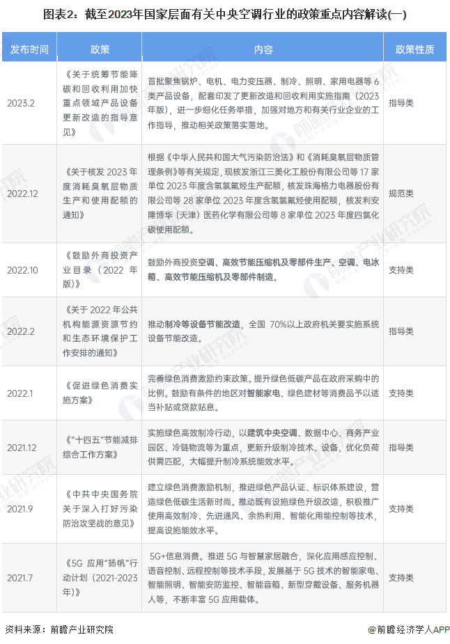 近年来,为更好的引导中央空调行业为代表的电器产业的良性发展,政府及有关部门出台了一系列的指导类政策,政策主要围绕发展发展建筑中央空调、完善空调能效标准、促进空调产品节能化、环保化发展等方向。同时鼓励家电回收,充分资源利用,助力我国2030碳达峰的长远目标。