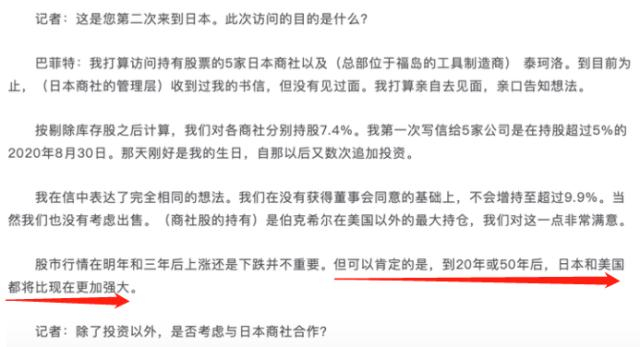 2011年巴菲特就造访过日本,视察了伯克希尔旗下工具制造商伊斯卡金属加工公司。当时他说:“任何地方都有机会。如果能在日本这里找到我欣赏且了解的事业,像是他们的竞争地位、价码、财务状况还有管理,我们明天就会出手。”