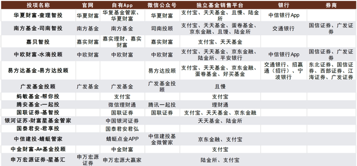 图表:试点投顾机构在合作展业方面的实践示例,常见形式为投顾组合策略上架基金销售平台