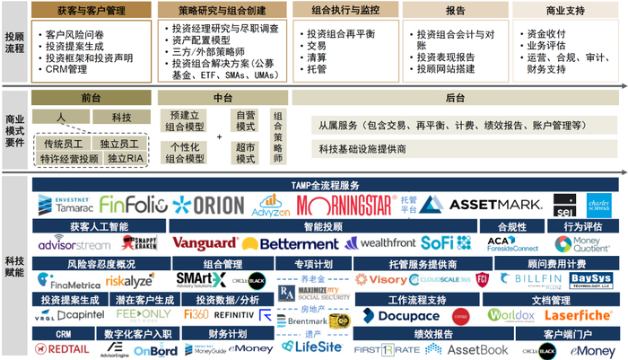 图表:美国投顾服务模式多样化,产业链高度分工细化