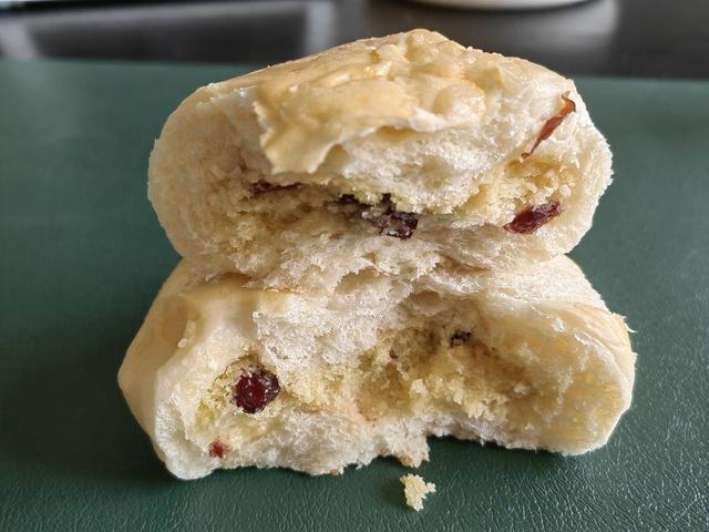 椰椰蔓越莓奶酥是店员小哥的推荐款,一吃果然有被惊艳到。椰蓉比想象的要给得更多,但不会有又油又甜的口感,配上微微有嚼劲的面包体,味觉上达到了甜度与面包香的一个平衡感,吃得出来是用心做的。
