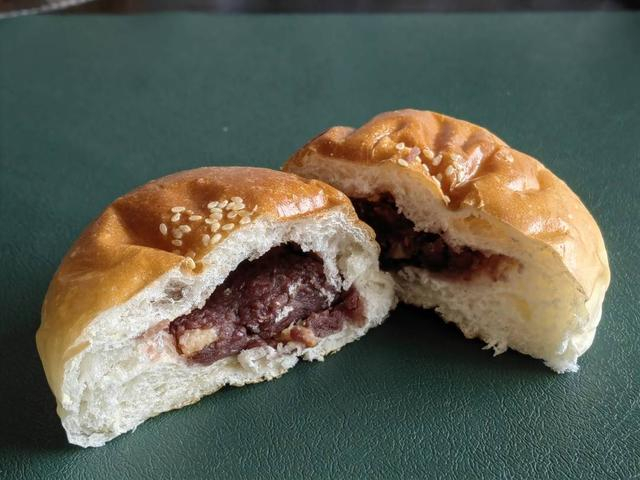喜欢吃甜口的不要错过橘皮红豆面包。面包体缝隙很大,充满空气感。红豆馅很绵密,吃得出来红豆泥中大颗的颗粒与大块的橙子皮。整体微微有点偏甜,对甜味敏感的人可能会不喜欢。