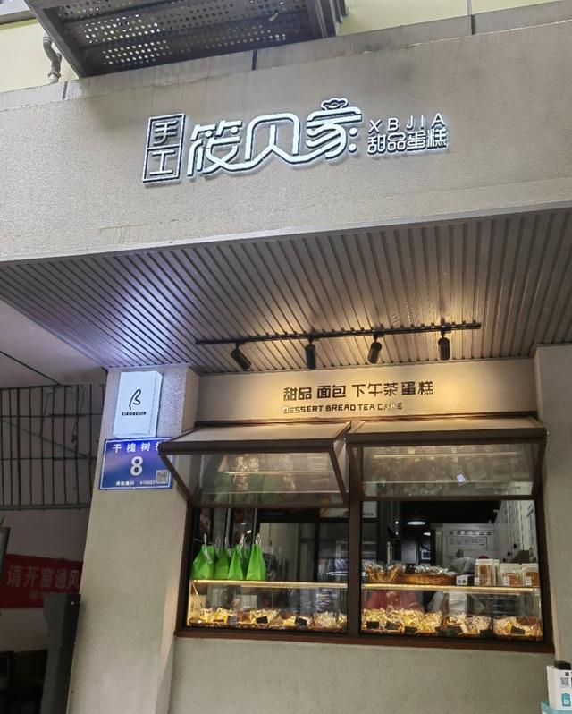 筱贝家其实不算新开,是已经开了有一年的面包店。但最近因为平价而再次火了起来。店面在市二医院附近的安静小巷子里,周边枝叶茂密的行道树给店面增添了一丝清凉与闲适感。