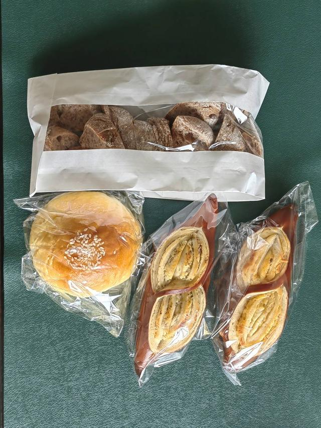 店内空间较大,面包都整整齐齐摆在各自的区域,看着不拥挤,比较清爽舒适。店主时不时会来看店,会态度友好但不过分热情地让顾客挑选面包。