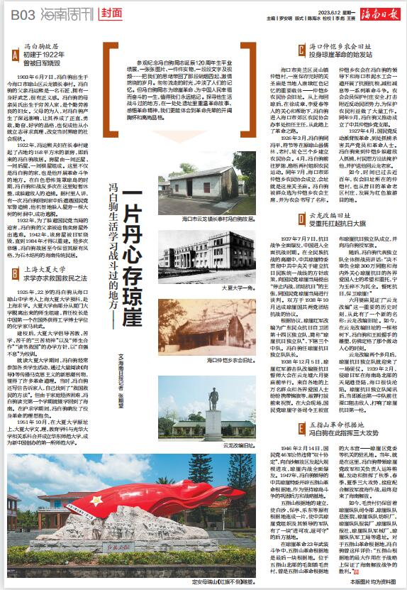 原标题:纪念冯白驹同志诞辰一百二十周年——琼崖人民的一面旗帜