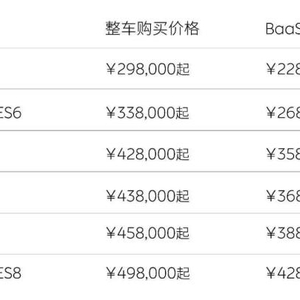 蔚来ES6起售价为33.80万元,BaaS后仅为26.8万元;