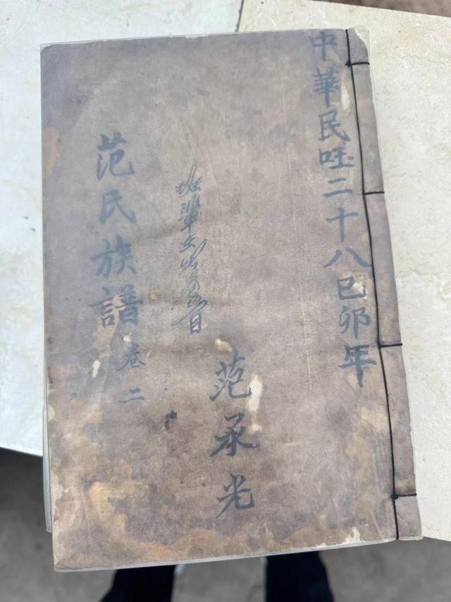 几天之后,我们终于见到了范氏族谱:已有些破旧残缺了。